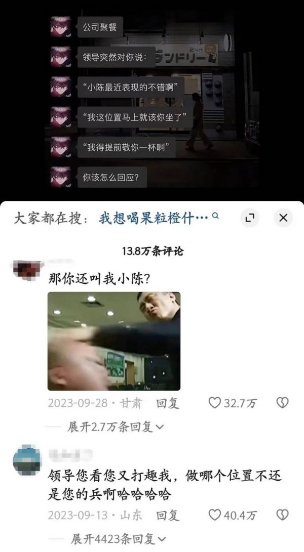亲戚问成绩和工资时如何高情商回答、老板安排奇葩工作和加班时如何委婉拒绝,在不具有同等沟通权利的情况下,贴心的交流变成了固定的话术,自由表达的空间被压缩,但言语的解读空间却被无限放大,“说错一句话,可能明早就会因左脚先进门被开除。”