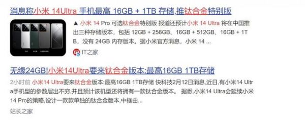 同时,今日的多份报道中都提到,小米 14 Ultra 有望推出钛合金版本,最高 16GB+1TB 存储。