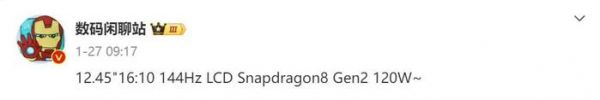 结合数码博主 @数码闲聊站 的爆料来看,小米平板 6S Pro 将配备一块 12.45 英寸的 LCD 屏幕,拥有 16:10 的屏幕纵横比,支持 144Hz 的刷新率;核心搭载高通骁龙 8 Gen2 移动平台;支持 120W 快充。