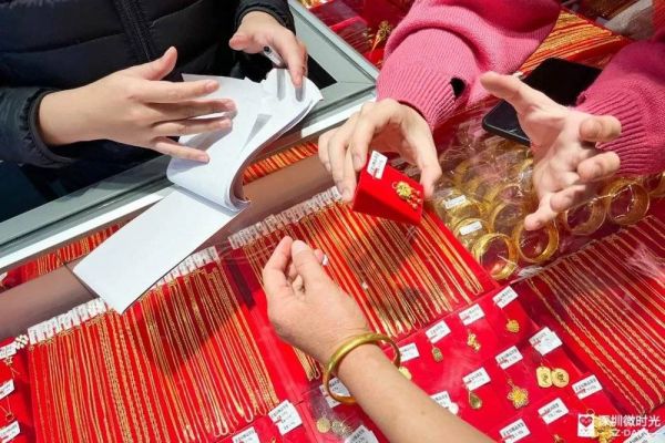 “有客户说,包红包的话,金额一目了然,有点太明显了。送礼盒的话,还会被拿出去比较。送黄金、翡翠这类的饰品,就再合适不过了。”过年走亲访友少不了送礼,深圳人总会带上一两件礼物,送父母、长辈和亲戚家的小孩。而1克以内价格便宜,又因做工显大的黄金,就成为了俘获人心的“必杀技”,显得阔绰且大气。