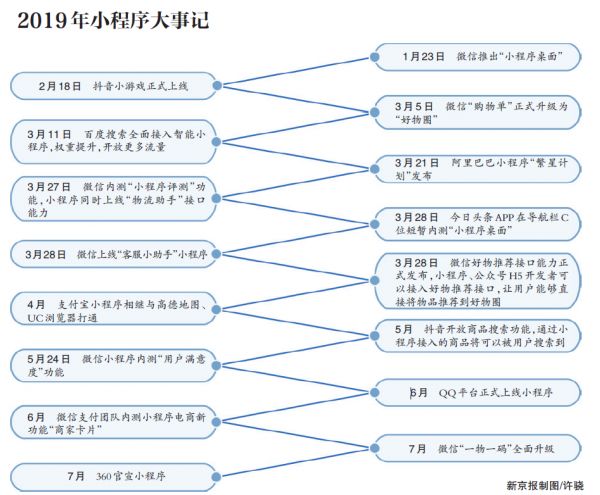 小程序这一概念最早由微信提出。有评价称,“2017年张小龙在微信里力推‘跳一跳’小游戏,来吸引用户使用小程序时,还没有多少人能理解小程序的价值到底在哪里。”不过,如今其已站上风口,小程序已成为互联网巨头的标配。有业内人士预测,2019年小程序电商总成交额将破万亿;小游戏市场规模将破200亿元,超越页游成为第三大游戏类型。