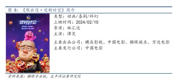 同时,《熊出没·逆转时空》的出品方数量也是同档期影片中最多的,一共有27家公司参与。其中,主要出品的上市公司为横店影视、中国电影、万达电影,主要发行上市公司为中国电影。