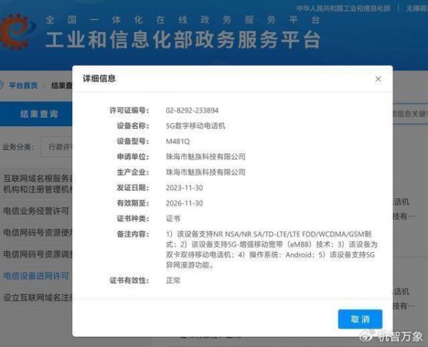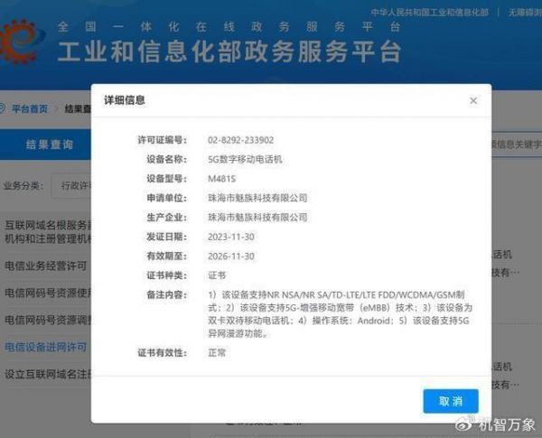根据目前曝光的信息来看,疑似魅族21 Pro的新机该机已经通过了工信部无线电核准、获得了工信部进网许可证和国家质量3C认证,也就是说,该机目前已经三证齐全,理论上随时可以官宣和发布了。而根据曝光的三证截图来看,该机将支持UWB超宽带技术、支持5G网络以及仍旧配备80W有线快充。