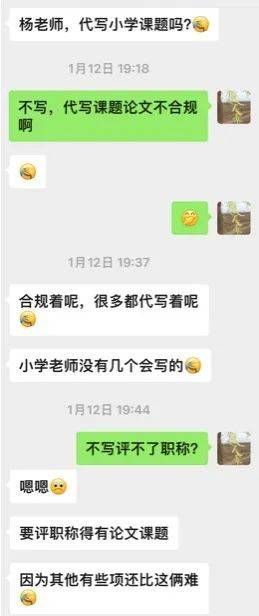 当然,对这些代写要求我都拒绝了,因为我的代写是有原则的,那就是代写的文本必须合法合规,是允许代写的,比如演讲稿、商业策划书等,论文、课题我是绝对不会代写的。通过跟这些找我的老师交流,我了解了中小学老师科研教研的虚假,也了解了这些老师的无奈。