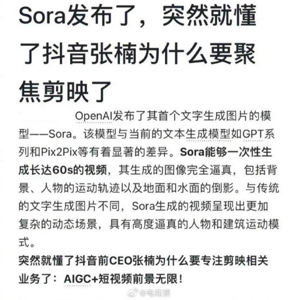 胡锡进谈文生视频模型Sora:这是爆炸性进展!