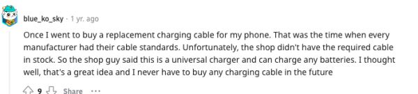 “我没买到合适的充电线,店员给了我个万能充,结果我再也没买过其他任何充电线。”