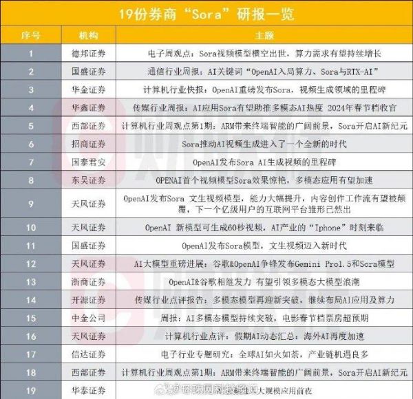 三天内超14家券商发布19份Sora研报 ,算力有望成投资新热门