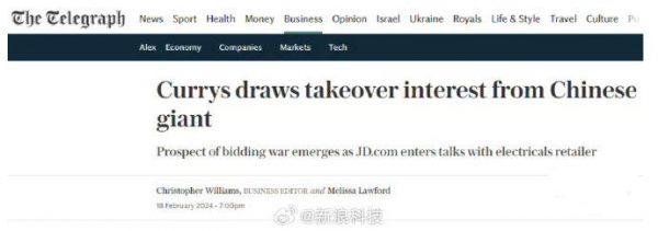 【消息称#京东拟收购英国电器零售商Currys##京东拟寻求中国以外的增长】据报道,京东一直在探索收购 Currys,在这家英国电子产品零售商周六拒绝私募股权投资后,增加了竞购的可能性。