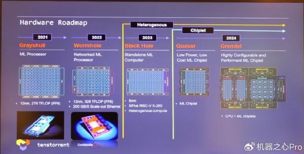 事实上,Jim Keller 所在的 Tenstorrent 就是一个“解题者”。他们有一个非常雄心勃勃的路线图,旨在迅速改进现有的基于 AI 的芯片架构,包括基于 RISC-V 的高性能 CPU chiplet 和先进的 AI 加速器 chiplet,为机器学习提供强大的解决方案。