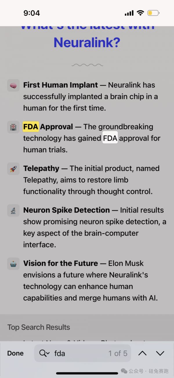 不仅适用于“如何”类的问题,Arc Search的总结对于快速了解一项话题来说也很有用,比如搜索“Neuralink的最新进展是什么?”Arc Search就会将Neuralink的首个人体芯片植入、FDA许可获得和首个产品意念控制等细节一一罗列,让用户可以在几分钟的时间内就完成信息获取。