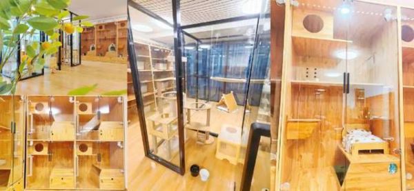 于是我们想到了宠物寄养,最开始想到的是买猫的猫舍。店主热情地宣传他们刚刚做的一个无犬猫猫酒店,既有麻雀虽小、五脏俱全的“青年旅社”,也有猫爬架、吊床、全新猫砂盆一应俱全的“玻璃套房”,甚至还有配备了床铺的“大床房别墅”,照片里整洁温馨的环境让我们感到十分放心。更主要的是,价格也不算贵,最便宜的“青年旅社”格子间只需要100元/天。