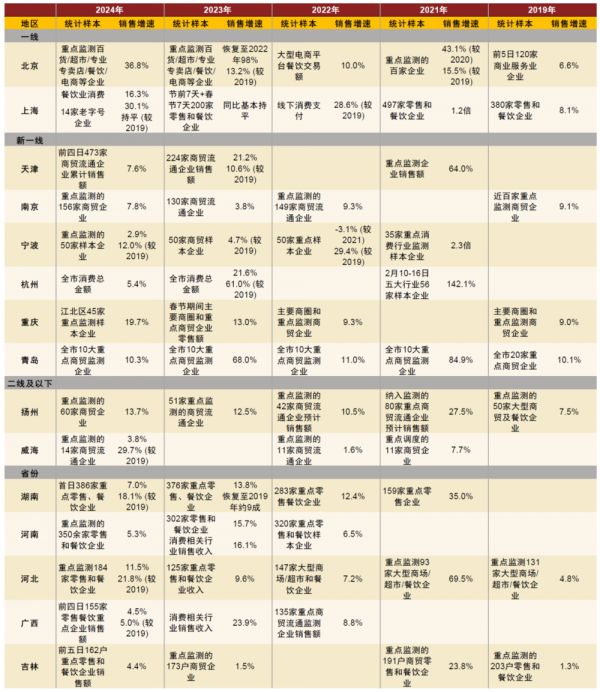 从消费规模来看,中金研究根据各省市披露的消费数据得出结论:按城市,春节消费规模增速领先的是北京(+36.8%)、重庆(+19.7%)、扬州(+13.7%)、青岛(+10.3%)。按省,春节消费规模增速领先的则是河北(+11.5%)。