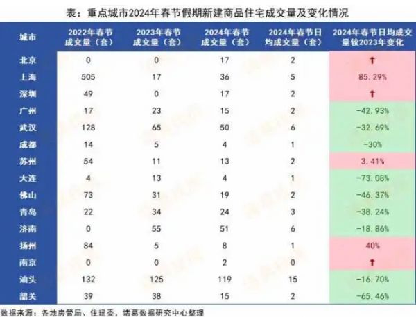 中指研究院数据也显示,春节期间楼市表现分化明显,仅部分城市受返乡置业带动表现尚可。
