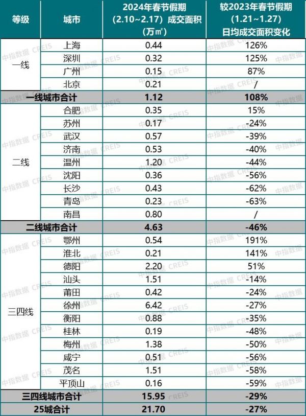 鄂州、淮北今年春节的新房成交面积同比增幅191%、141%,位列前一前二。上海和深圳的上述指标增幅也达到126%、125%,恢复力度可喜。
