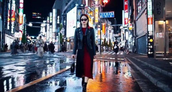 “一位时尚的女士穿着黑色皮夹克、长红裙和黑靴,在充满霓虹灯和动感城市标志的东京街头行走。她佩戴太阳镜和红色口红,手提一只黑色手袋,自信而随意地走着。街道潮湿而有反光,色彩斑斓的灯光在地面上形成镜像效果。许多行人在街上来往。”这是OpenAI官网上,展示的一则让Sora生成视频所使用的Prompt(提示词)。