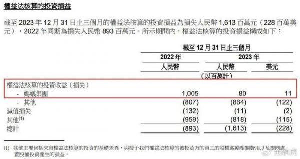 值得注意的是,阿里巴巴已不是首次披露蚂蚁集团的投资净亏损扩大。据金融虎网此前观察,2022年全年,蚂蚁集团账面利润总计约312亿元,较2021年的730亿元同比下降57%。阿里巴巴当时即表示,与蚂蚁集团有关的权益法核算的投资收益同比下降主要是由于蚂蚁集团对其先前购入投资的净投资收益减少所致。