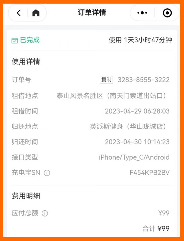 从泰山顶坐缆车到山脚,林莹发现电量还没充到10%,她想着高铁站里肯定有还充电宝的地方,结果,这个充电宝陪伴她从泰安乘坐高铁到了济南,又从济南站到下榻酒店,再从酒店特地打车到3公里外的健身房门口,终于还上了。