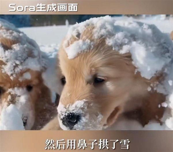 周鸿祎发视频称,Sora有三个片段让他觉得非常惊讶。其中一个是一堆金毛小狗在雪地里打滚儿,狗狗用鼻子拱雪,甚至一粒一粒的雪粒都能感觉到,他感觉这个画面非常真实。