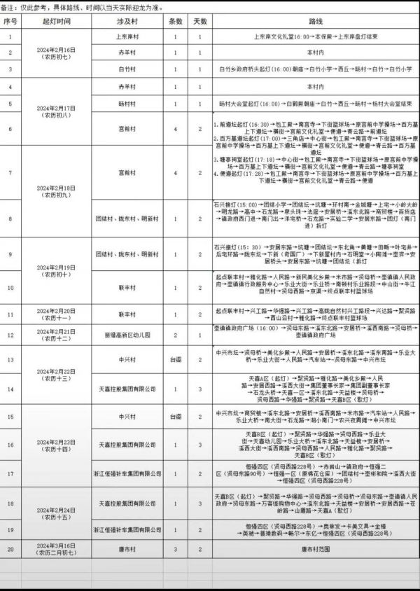 有网友分享老家接下来的过年迎龙活动安排表,一直到元宵节每天都有活动可参加。3月16号(农历二月初七)那天都还有安排,归属在过年的范畴内。