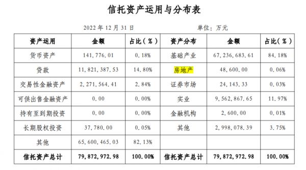 从信托资产分布情况看,英大信托资产主要分布在基础产业、实业项下,占比分别达84.18%、11.97%,房地产业占比仅为0.06%。