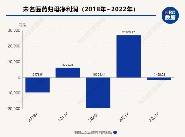 然而,经历一波动荡之后,未名医药的业绩也一路向下。根据2023年业绩预告,相比2022年净亏损1468.98万元,未名医药2023年归母净利润预计亏损2.43~3.45亿元。