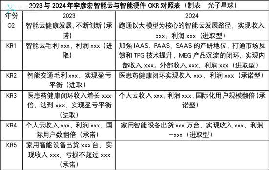 到2024年,关键词变成了“赚钱”。“利润”两个字出现在移动生态与智能云两个目标,并且7个关键成果中有5个都存在利润考核,包括内容、云计算、大健康、个人云、小度。