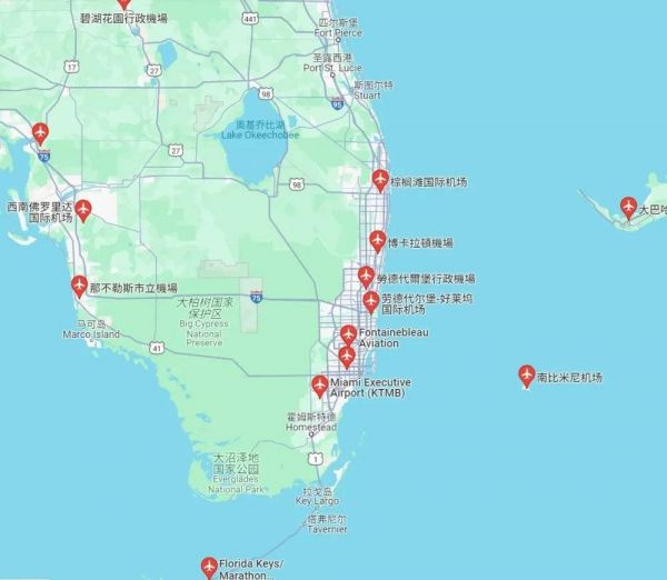 有网友在卫星地图上数了一下,以美国佛罗里达州迈阿密周边地区(面积相当于上海的70%面积)为例,这么小的一片区域内居然分布着大小10座机场,所以这里的航空运力就没有那么紧张,也没有很迫切需要修建高铁。