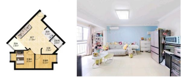 所以,阿香选择了在房价的裹挟下,向下兼容。拿下这套房龄有点老,户型有些奇葩,但是总价很低(39万), 压力没那么大的小两房。