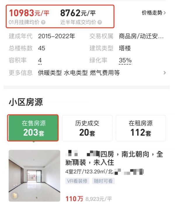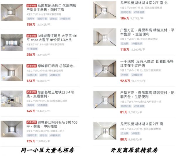 在我浏览一个新区的二手房源信息的时候,我看到那些交房了多年的二手毛坯房或者开发商原装精装房,还在挂牌。