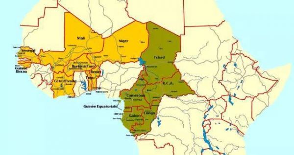 图片来源:essra.org.cn,非洲法郎区,黄色为西非法郎区,绿色为中非法郎区