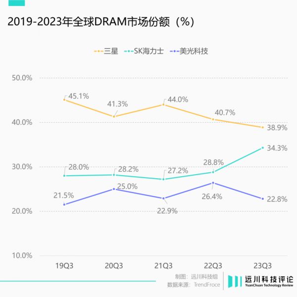 众所周知,内存市场一直保持着三足鼎立的格局。其中,韩国人一家独大:三星与SK海力士两家公司,就占去七成市场。但排名第三的美光,仍保有20%以上的市占。双方打得你来我往,各有胜负。