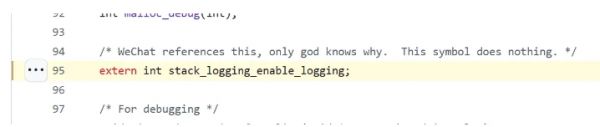 这一次,苹果工程师直接把stack_logging_enable_logging的注释改成了:这串 API 什么用也没有,鬼知道为什么微信还在调用它。