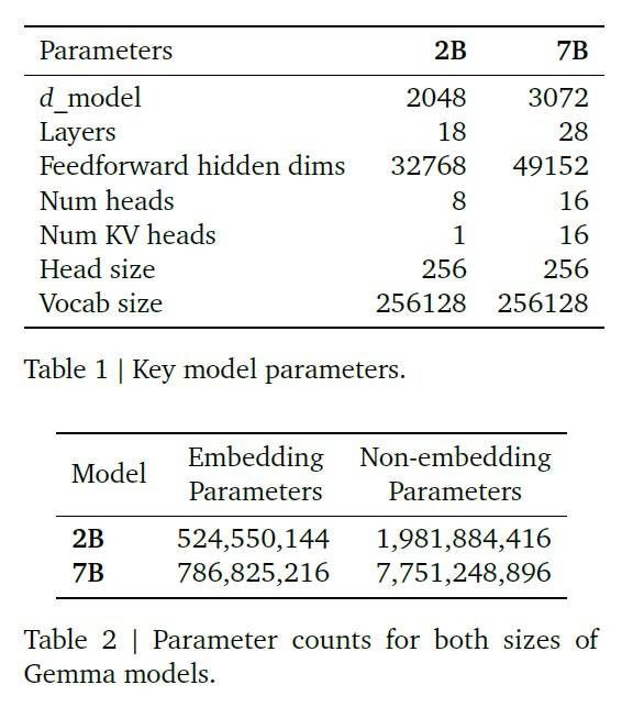 Gemma模型主要参数(图源:谷歌)