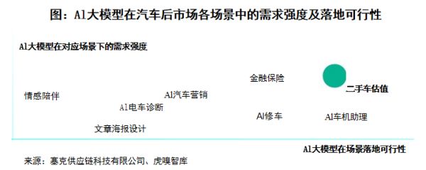 AI大模型在汽车后市场具有广阔的应用潜力,尤其适用于复杂且数据丰富的新能源汽车市场。阶段性问题如服务质量不一、供应链管理混乱等可以通过AI大模型得以解决。目前规模化应用主要在汽车维保、金融保险、二手车交易等领域。