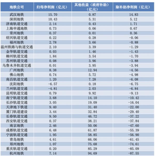 要知道,绝大多数城市地铁都难以做到自负盈亏,要么依赖物业开发补充,要么靠财政补贴维持,连一线城市都不例外。