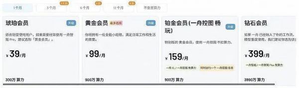 升级不同等级会员所需的费用 图源:“一舟智能”