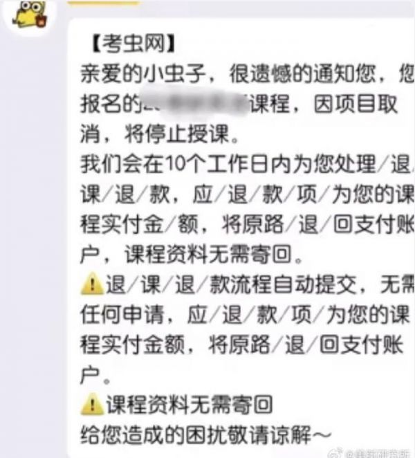 有网友表示,已经收到了官方客服发布的消息,会在10个工作日内处理退课退款,应退款项为课程实付金额,退课退款流程自动提交,无需任何申请。
