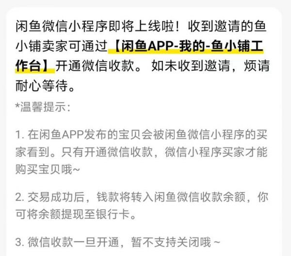 终于,闲鱼支持微信收款了!