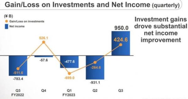 最新财报显示,软银2023财年第三财季(自然年2023年四季度)实现净利润64亿美元,接近市场预期的两倍,也是2022年三季度以来首次扭亏为盈。其中,愿景基金一期(SVF1)单季投资收益53亿美元,光是转让部分ARM股权就获得了55亿美元收益。