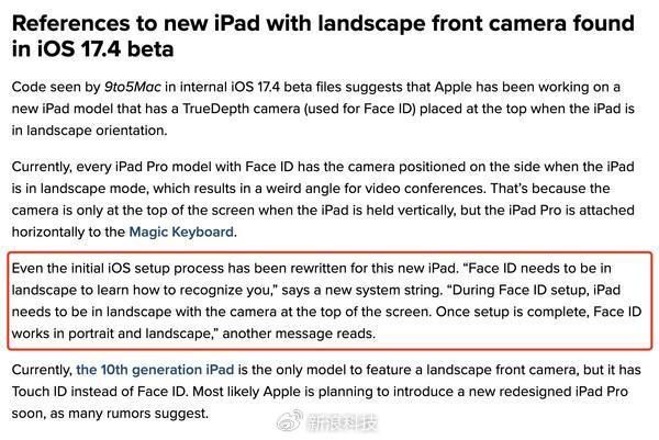 此外,苹果似乎重写了新款iPad的设置过程,包括“Face ID需要处于横向状态才能学习如何识别您”、“在Face ID设置过程中,iPad需要处于横向状态,并且摄像头位于屏幕顶部。设置完成后,Face ID可以纵向和横向工作”等描述也在佐证,苹果将推出一款采用横向Face ID的iPad产品。