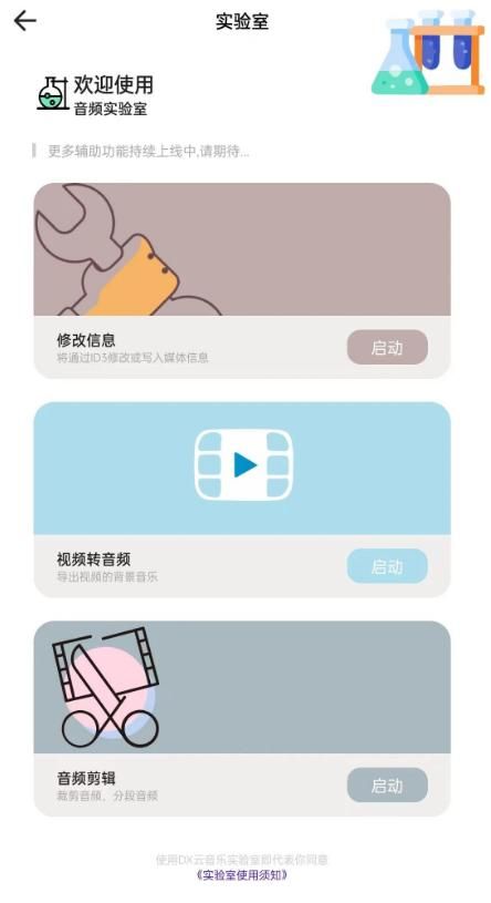 软件中的实验室功能是其技术实力的展现,从修改音频信息、将视频转为音频,到高级音频剪辑,为音乐编辑的爱好者们提供了广阔的天地。