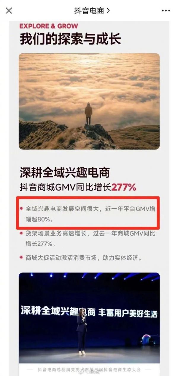 凭借着超8亿日活跃用户和超强算法推荐能力,抖音电商在不做大额补贴、商品不够丰富的情况下,依然实现了GMV的快速提升。