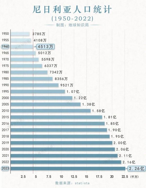 根据最新人口数据估计,非洲国家尼日利亚2023年底的人口已经达到2.262亿,继续领跑非洲,并且超过巴西,排名世界第六,非常逼近世界排名第五的巴基斯坦和第四的印度尼西亚。