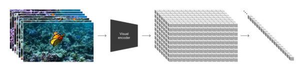 图1. Sora 将视频编码映射到隐空间,再切割成时空补丁,被称为时空令牌(time-space token)。(openai.com)