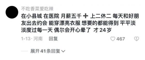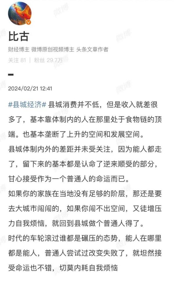 当然,还有大量类似的帖子充斥在社交媒体上,一个个极具冲击力的细节,无不在诉说着:县城遍地是赢家,县城才是快乐老家。