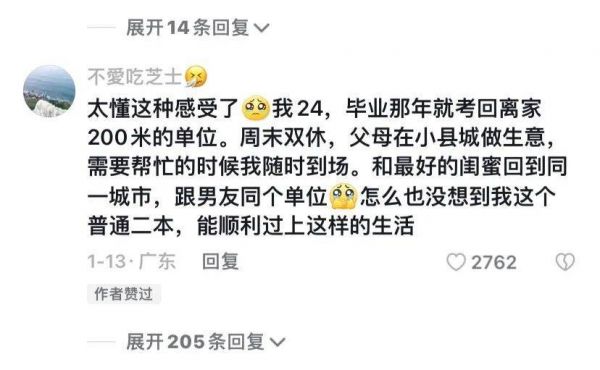 其实早在此前,极具智慧的网友就创造了一个词叫“小县城赢家”,特指的是父母双职工或有一方做生意,自己体制内,在县城有车有房,还不止一套。