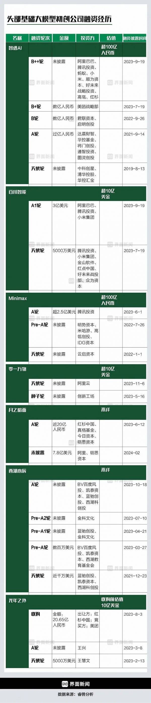 业界普遍认为,在国内众多基础大模型创业公司中,留下的不会超过5家。当下正是各家公司打融资心理战的时候,多一家公司公布融资信息,就意味着又有几家将被挤下牌桌,需要尽早放弃基础大模型的研发。