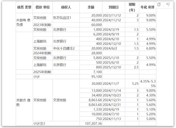 外部债务方面,2023年文投控股所欠东方弘远6亿元债务已经到期,年化利率为9%。而2024年将有2.8亿元到期债务。去年12月末,文投控股与东方弘远签署债务展期协议。