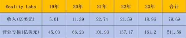 2019-2023年,Meta有关于Reality Labs财务数字的披露,营业亏损高达512亿美元。2014.4-2018年未披露相关数字,但五年至少50亿美元营业亏损大抵是逃不掉的。