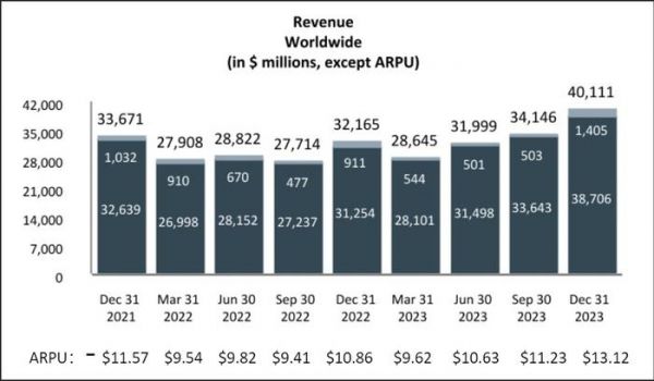 Meta呢,APP全家桶的用户高达39.8亿。可它在财报中明确表示,24Q1开始,将不再披露DAU、MAU等数据。而是决定刺刀见红,更进一步的披露广告的展示次数和广告价格变化,在用户隐私保护日益加强的背景下,只有AI技术过硬才能有信心把广告次数和价格提上去。